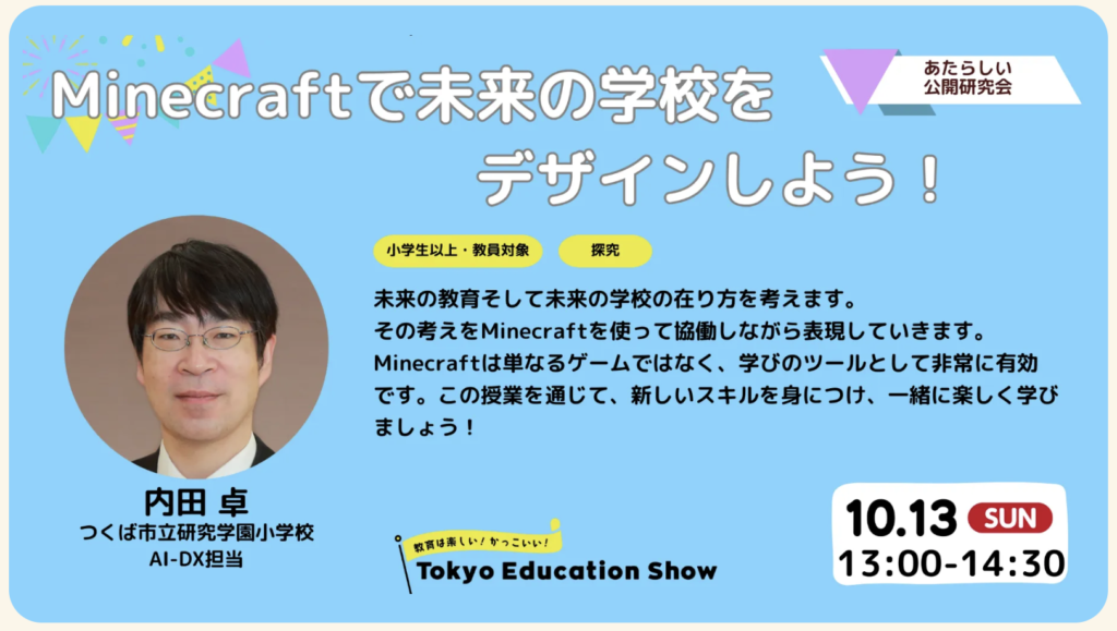10/13 Tokyo Education Show マイクラワークショップをサポートします!