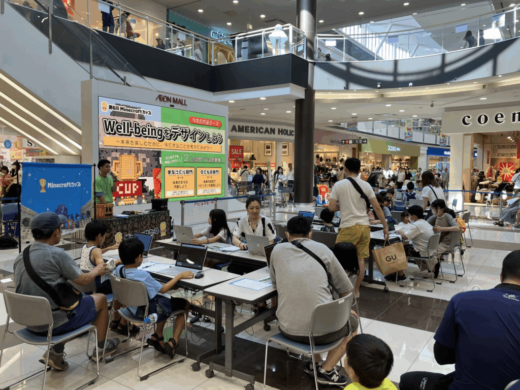 イオンモールを再現したMinecraftカップオリジナルワールドで、教育版マインクラフトを使ったプログラミングを体験しよう!
