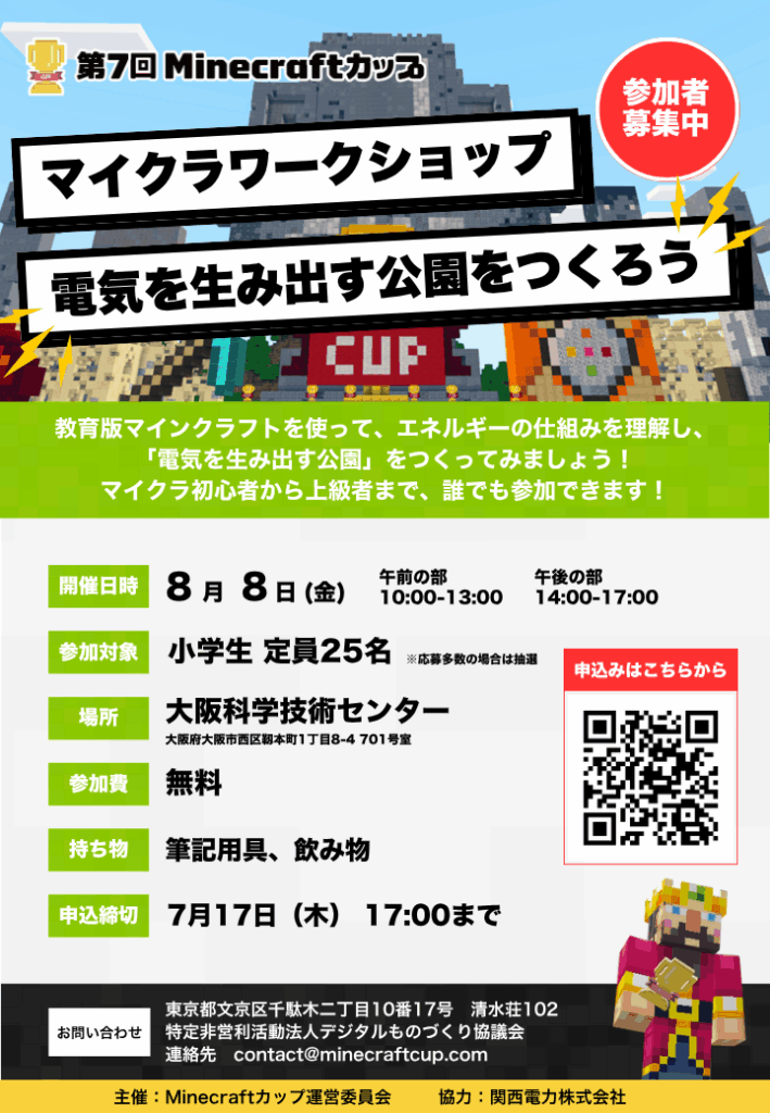 8月8日に大会ゴールドパートナーの関西電力株式会社と協力し、大阪市にある大阪科学技術センターにて、「電気を生み出す公園をつくろう」ワークショップを開催します。