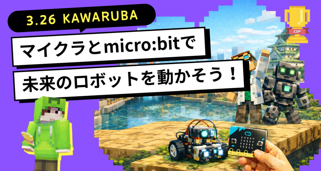 3月26日に「CO-CREATION PARK KAWARUBA」にて、「マイクラとmicro:bitで未来のロボットを動かそう!」ワークショップを開催します