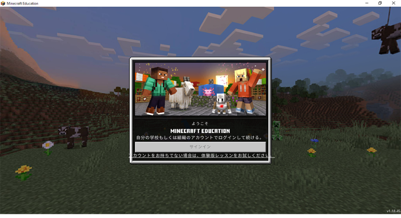 4登録したユーザー情報で、教育版マインクラフトにサインイン