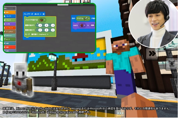 マインクラフトに詳しい先生に、パソコンの操作方法やプログラミングスキルを教えてもらいながら、将来大人になった時に役立つ色々な力を身につけることができます。