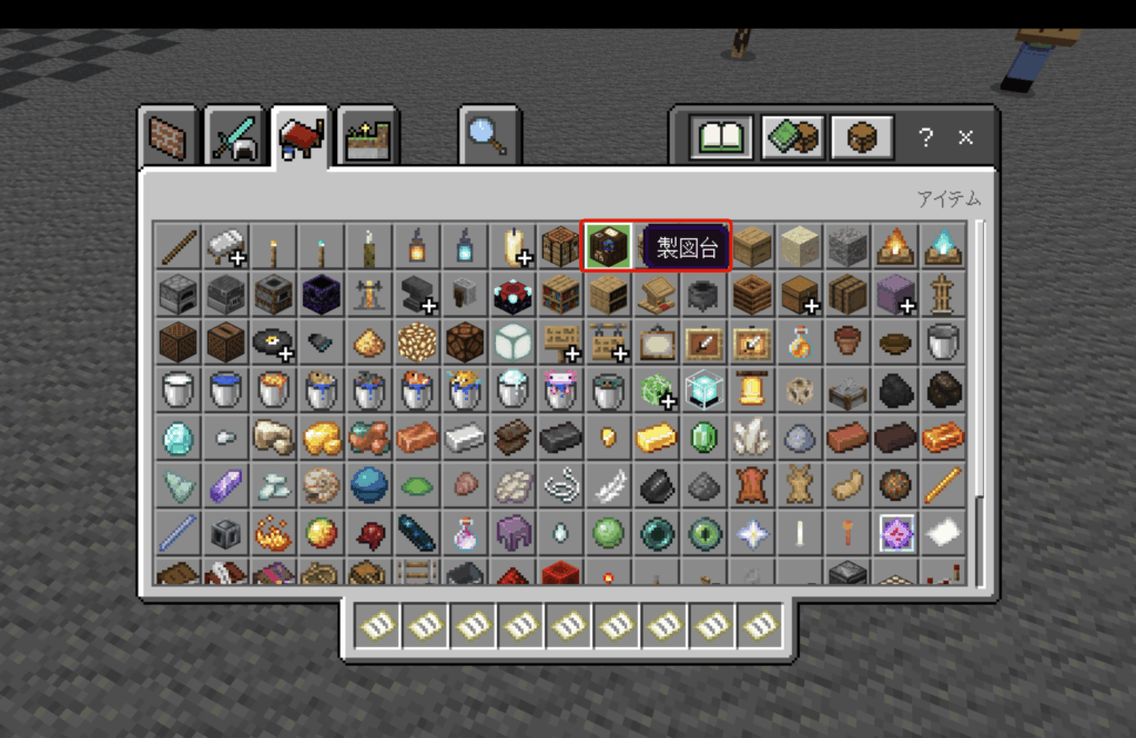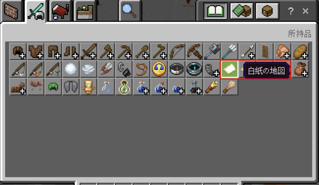 マップを作成するワールドで、インベントリから白紙の地図を取り出します。