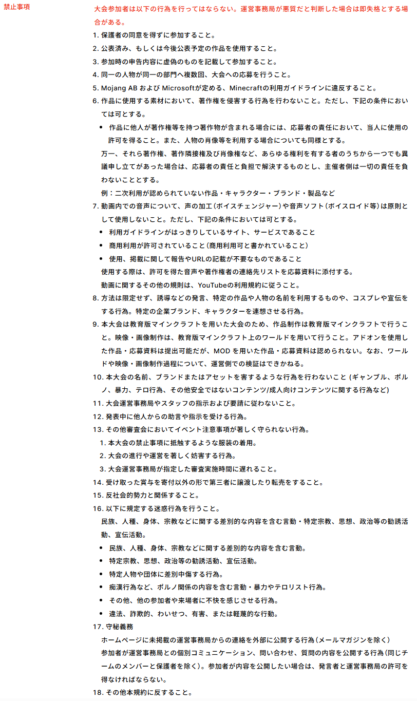 動画制作にあたって、応募要項の禁止事項を必ずお守りください。