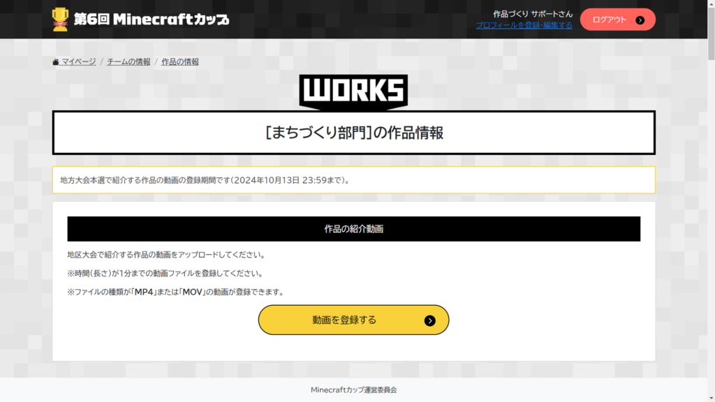 予選通過後、地区大会での発表に向けて1分間の作品紹介動画を新たに制作してください。