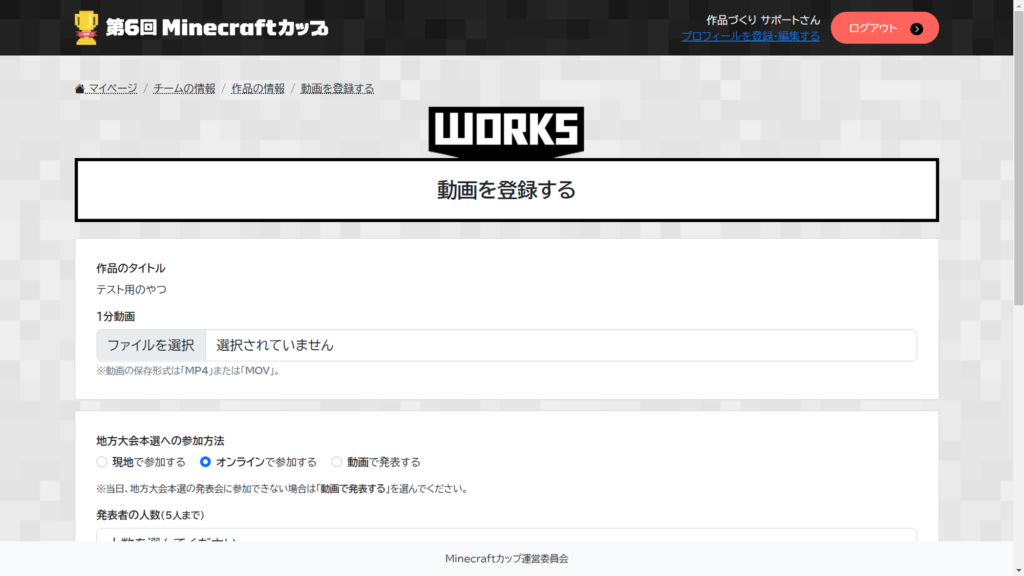 - 地区大会の発表人数(動画で発表の場合は動画の出演者数)(最大5名)