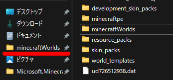 入力した後、Enterキーを押すとマイクラのワールドデータが入っているフォルダに移動できます!