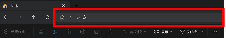 エクスプローラーを起動し、「ホーム」と書かれているところをクリックします。すると、文字を編集できるようになるので、すでに入ってい文字をすべて消して(今回の場合、「ホームという文字列」)、以下の文字列を張り付けてください。