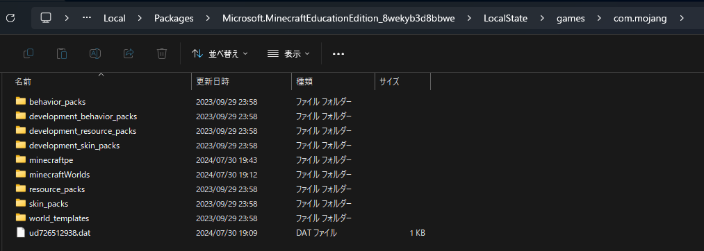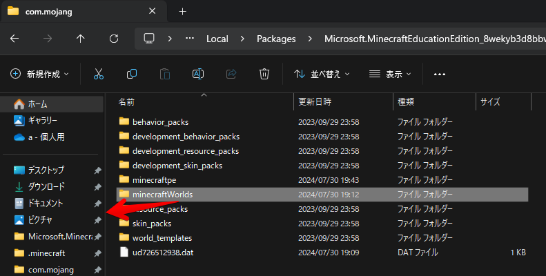 教育版マインクラフトのデータ格納先について