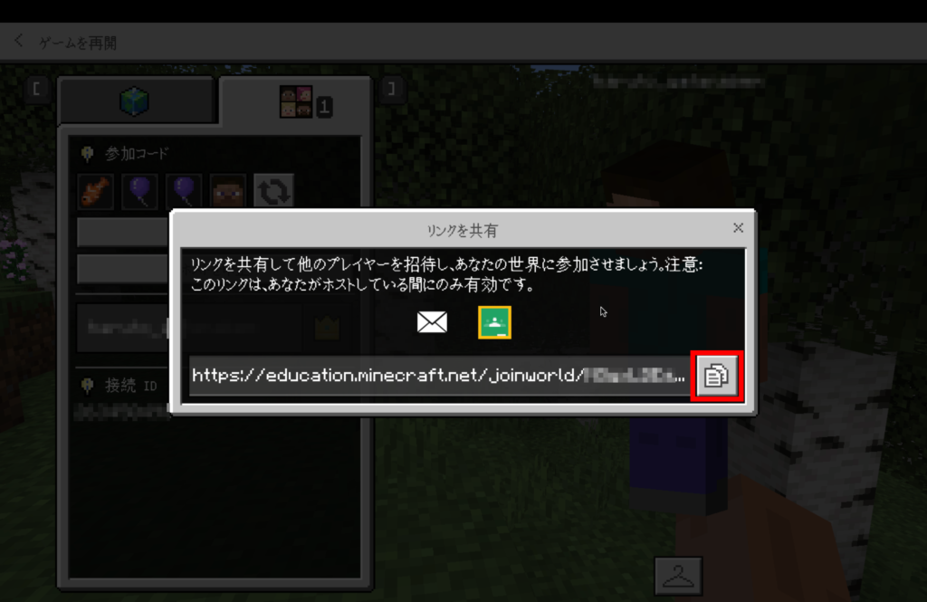 立ち上がったウィンドウに表示されているリンクを、参加させたいプレイヤーに共有します。
