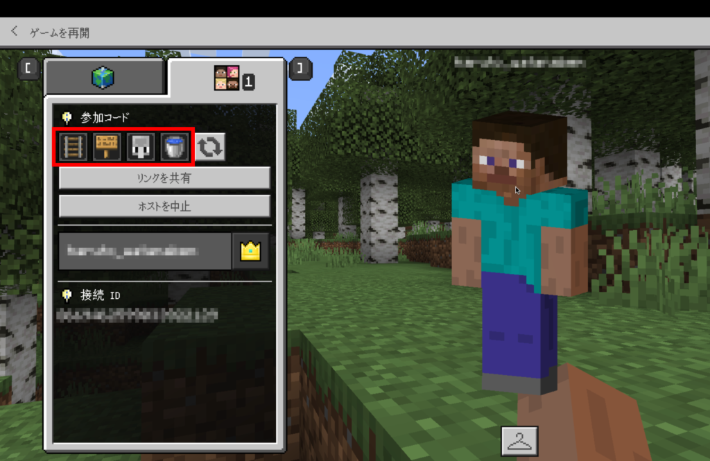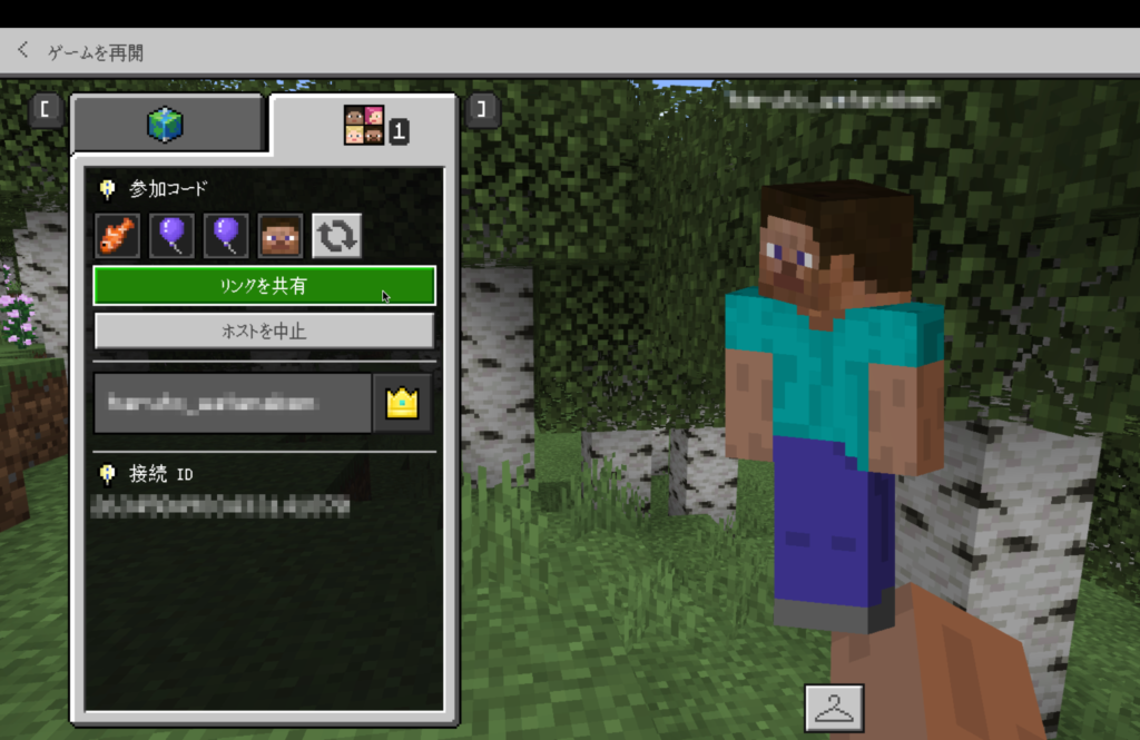 まず、上記と同じ手順でワールドのホストを開始してください。