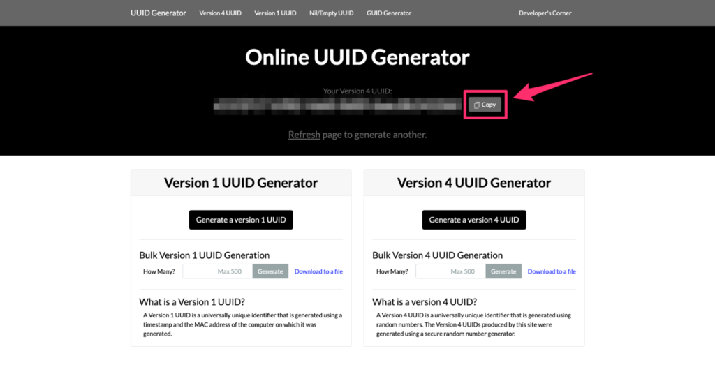 UUIDを二つ生成したら、メモ帳などにコピーしておきましょう。