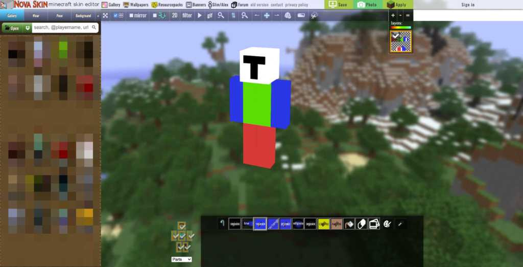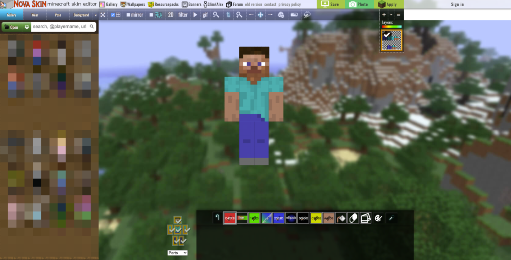 https://minecraft.novaskin.me/ にアクセスして、スキンを作っていきます。