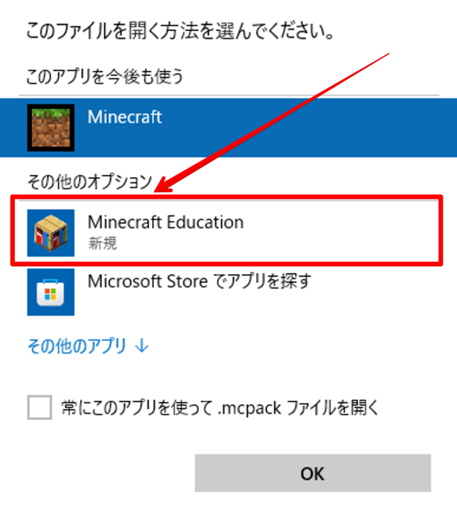 Minecraft Educationを選択して「OK」をクリック