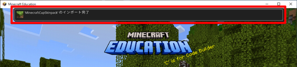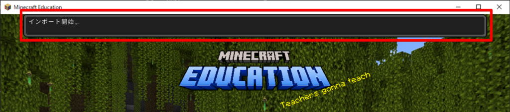 マイクラの画面で、以上のように「インポート開始」と「インポート完了」が表示されればOKです。