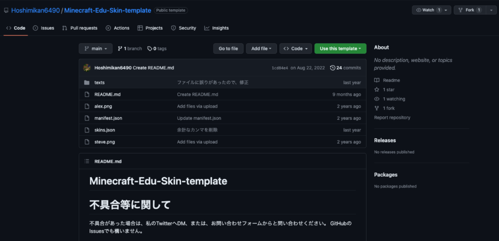 それでは、スキンパックを作っていきます。自分ですべて準備することもできますが、テンプレートを用意してくださっている方がいるので、そちらを使わせていただきます。