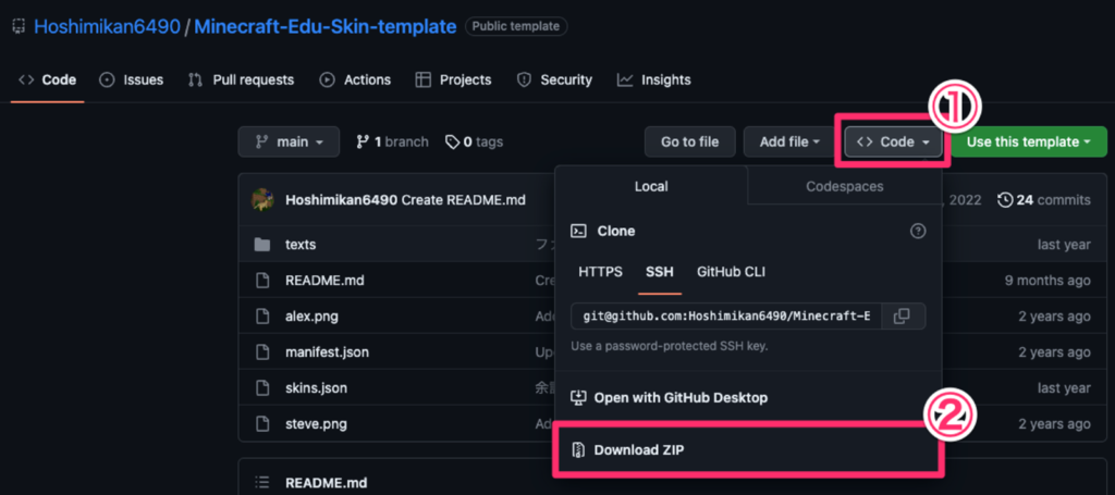 「Minecraft-Edu-Skin-template-main.zip」というファイルがダウンロードされました。