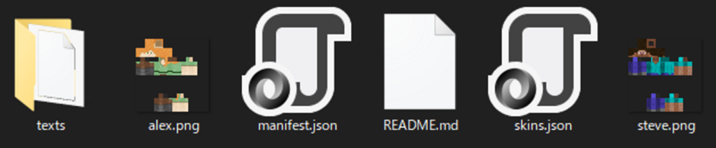 今回は使わないので、「Steve.png」と「alex.png」、「README.md」を削除します。