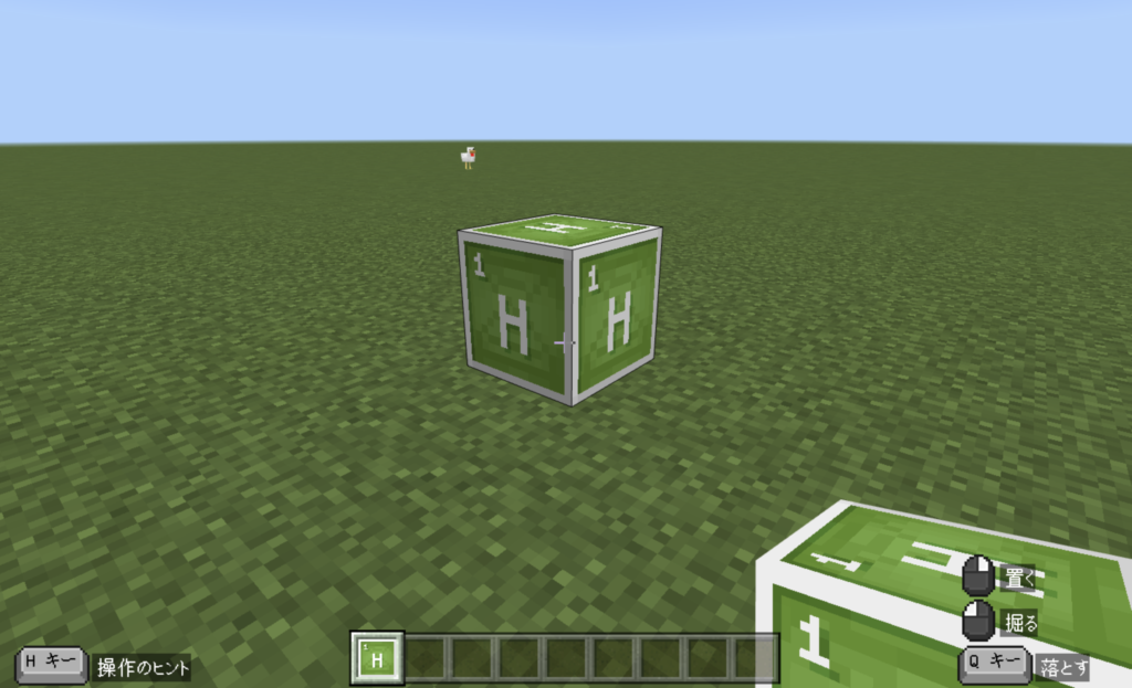 このように、元素がたくさん表示されます。H(水素)をインベントリに移動させて、置いてみます。