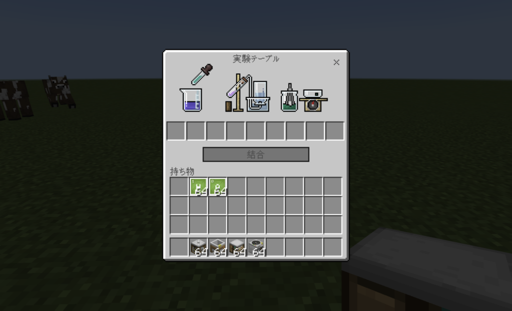 実験テーブルは、以下の4つのアイテムを作ることができます。