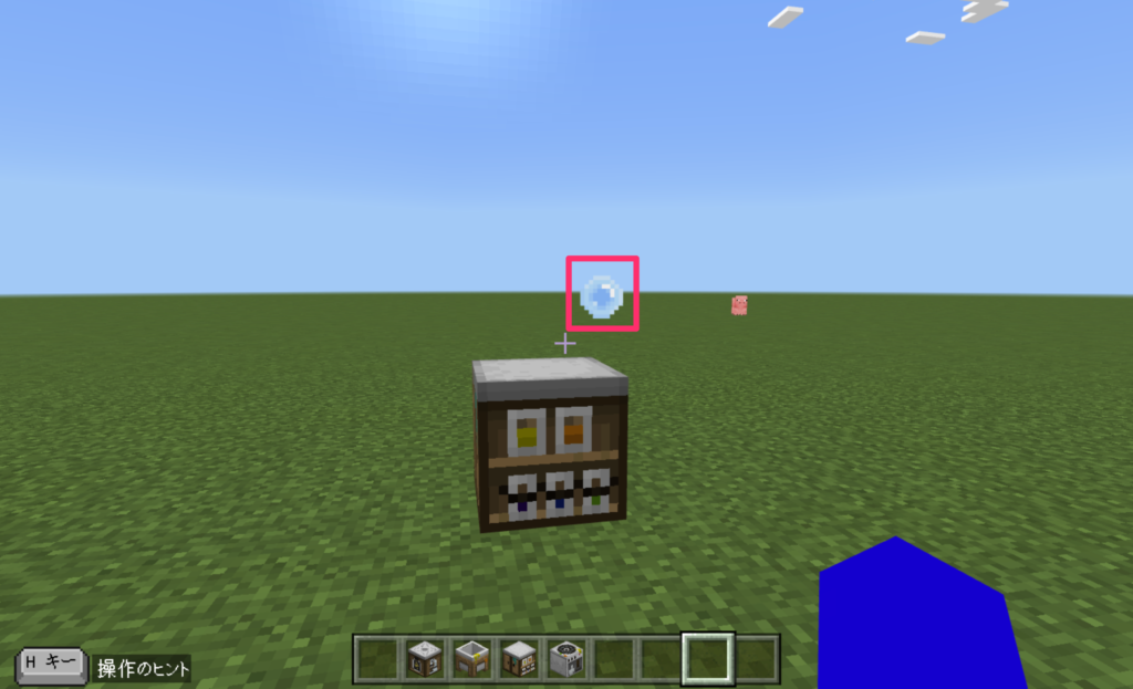 投げたところが凍りました!このように、普通のマイクラには存在しないアイテムを元素を使って作ることができます。