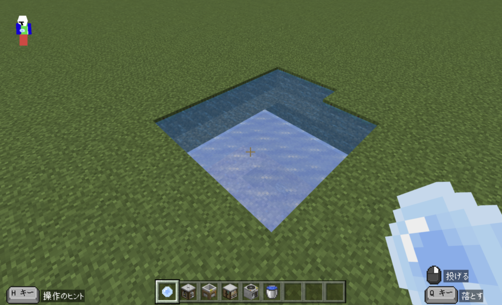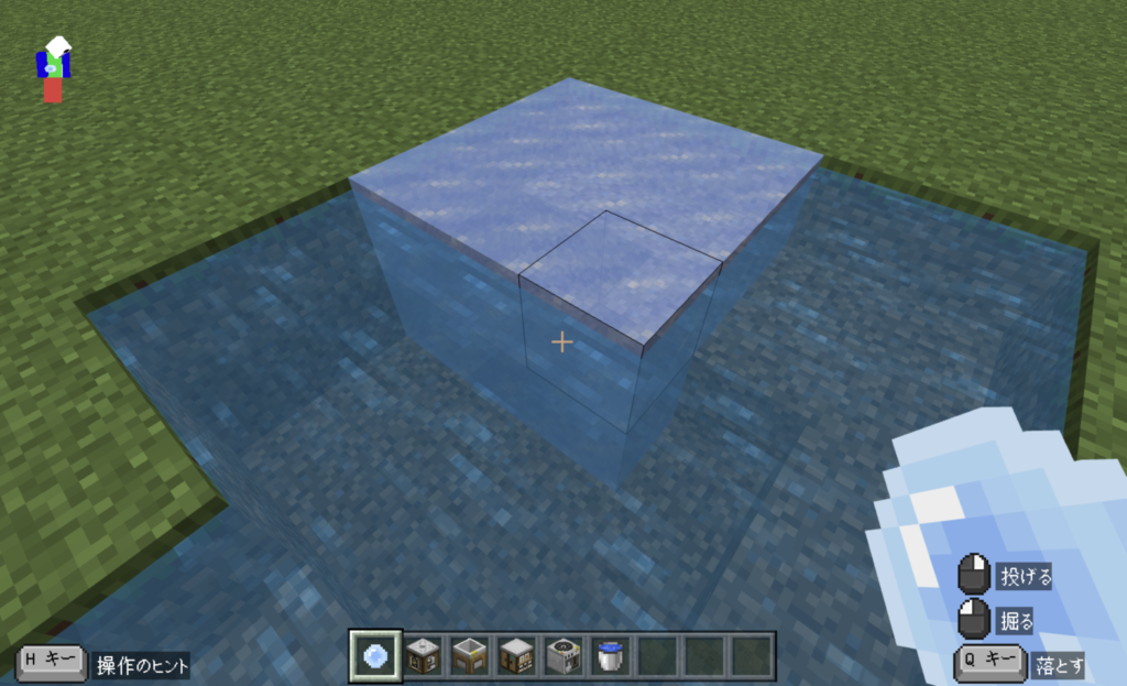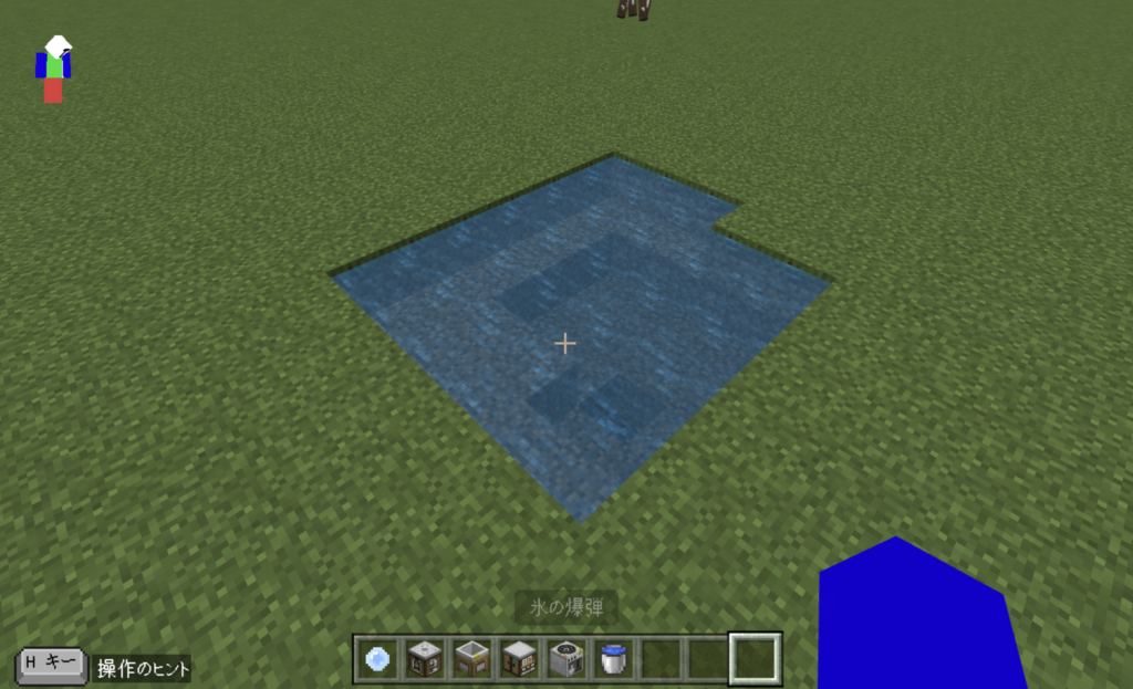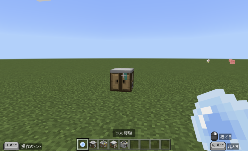 水場を用意しました。ここに向かって氷の爆弾を雪玉のように右クリックで投げてみます。