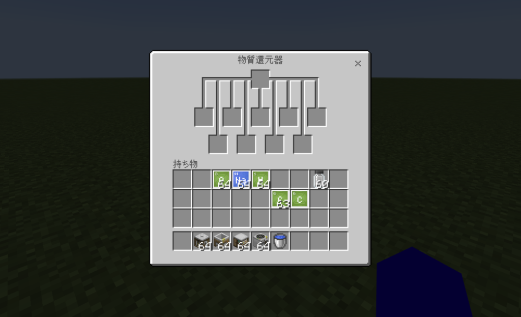 物質還元機を右クリックして開くと、以上のような画面になると思います。