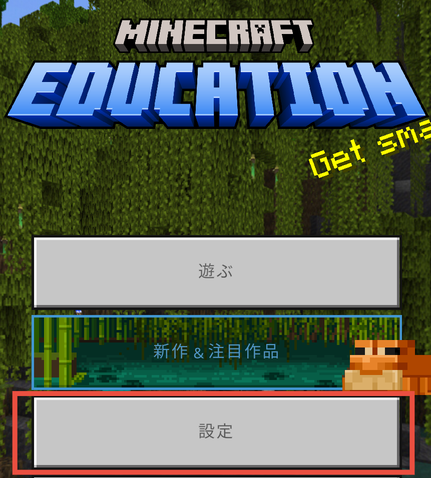 教育版マインクラフトの全体的な設定は、タイトル画面の設定ボタンから行います。