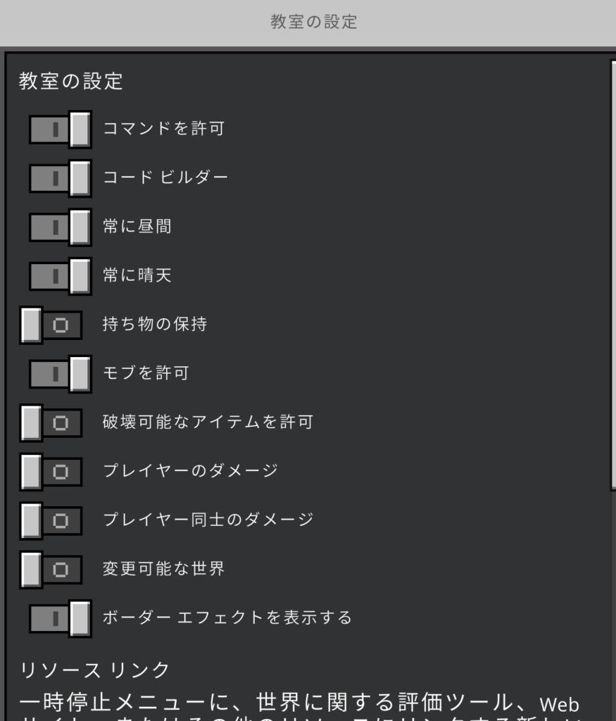 ここで「教室モード」をクリックしてみましょう。こちらの設定を以下のように設定すると、先程の「ゲーム」の設定項目で関連するところが自動的に変更されます。
