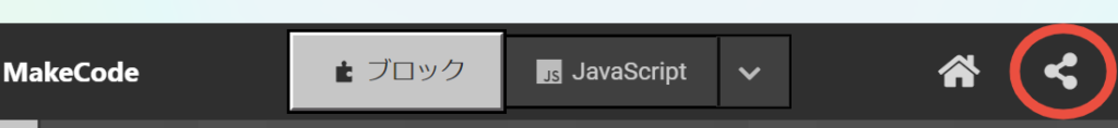 コードビルダーのMakeCodeで作成したプログラムは上記の方法ではバックアップされませんので、コードビルダーの「共有」ボタンをクリックしてURLをメモ帳やスプレッドシートなどに保存しておくと良いでしょう。