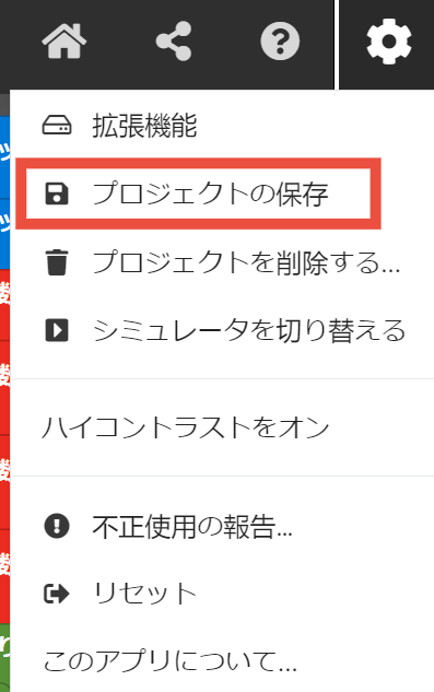 「プロジェクトの保存」はファイルとして保存が出来ます(Windowsのみ)ので、大切なプログラムはしっかりとバックアップを取っておきましょう。