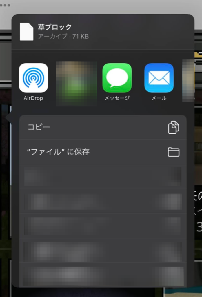 この時、共有先を選択することでワールドデータが保存できます。いくつか保存先を想定した事例を以下に列挙してみます。