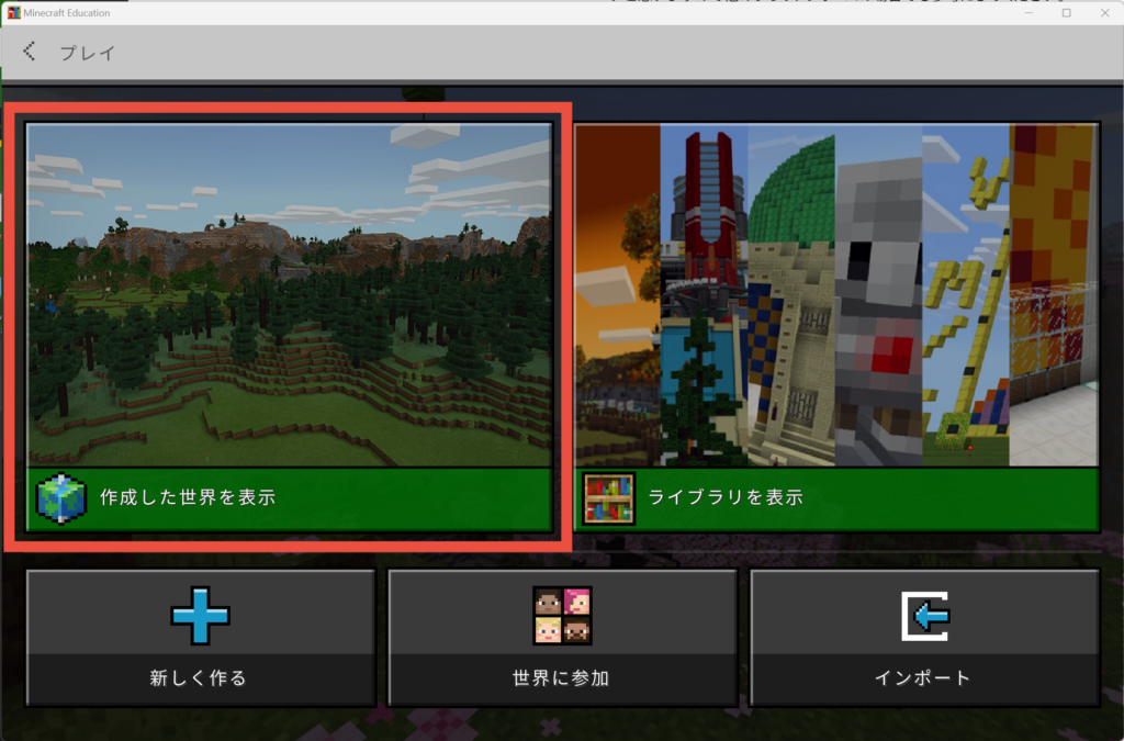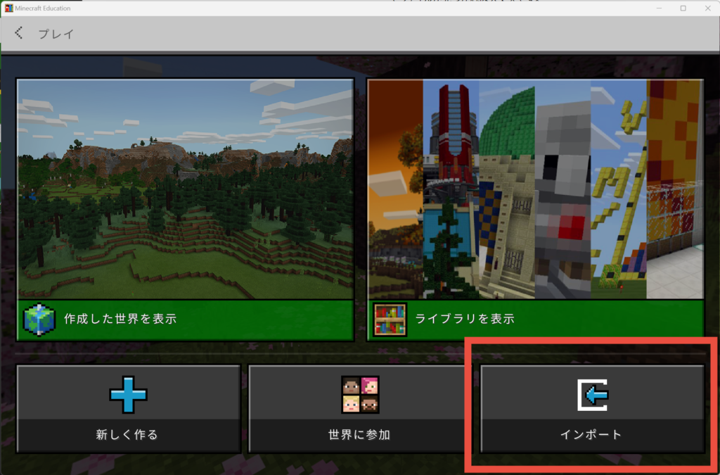 Windowsの教育版マインクラフトでは2つの読み込み方法があります。