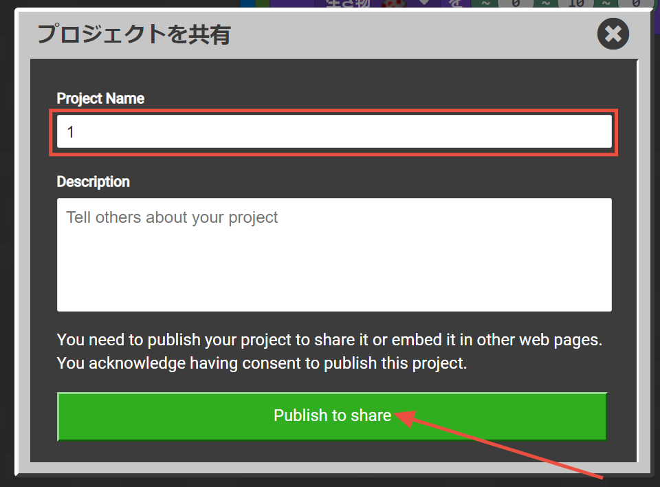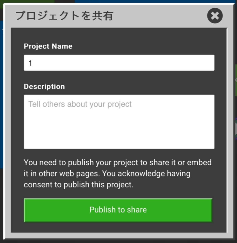 【Publish to share】ボタンをクリックしてください。