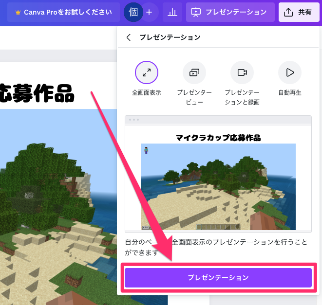 「プレゼンテーション」を押します。
