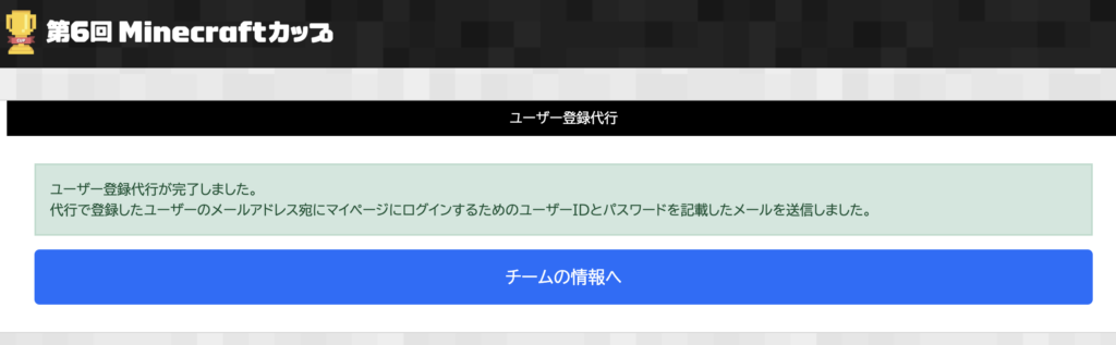 件名:【自動送信】Minecraftカップ 会員登録完了のお知らせ