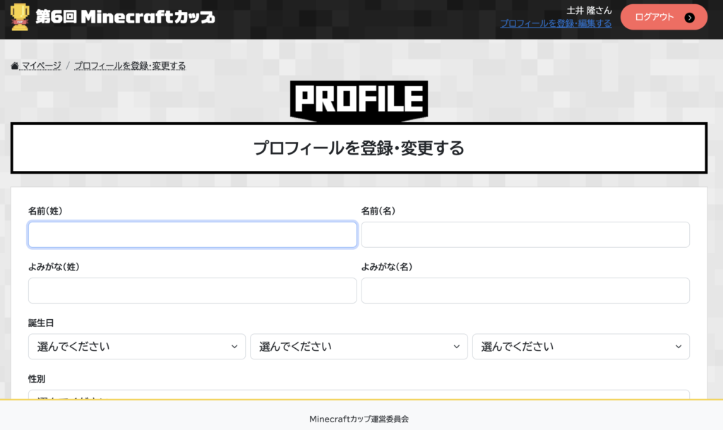 Minecraftカップでは、参加するすべての方に会員登録をお願いしています。