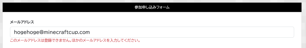 同じメールアドレスをつかって会員登録をしようとすると以下のエラーが表示されると思います。