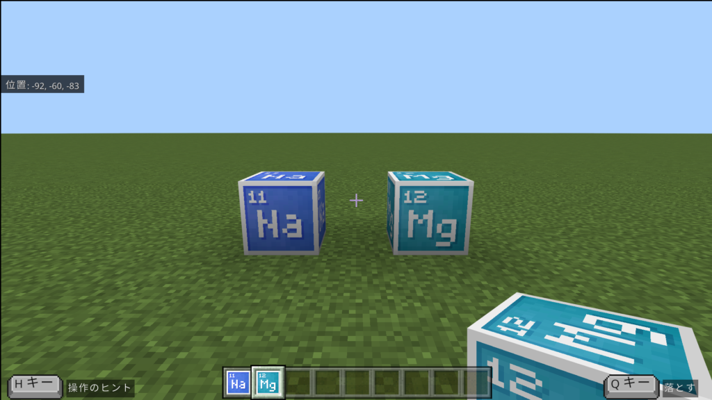 今回使用する元素ブロックは11番のNa(ナトリウム)ブロックと12番のMg(マグネシウム)ブロックです。