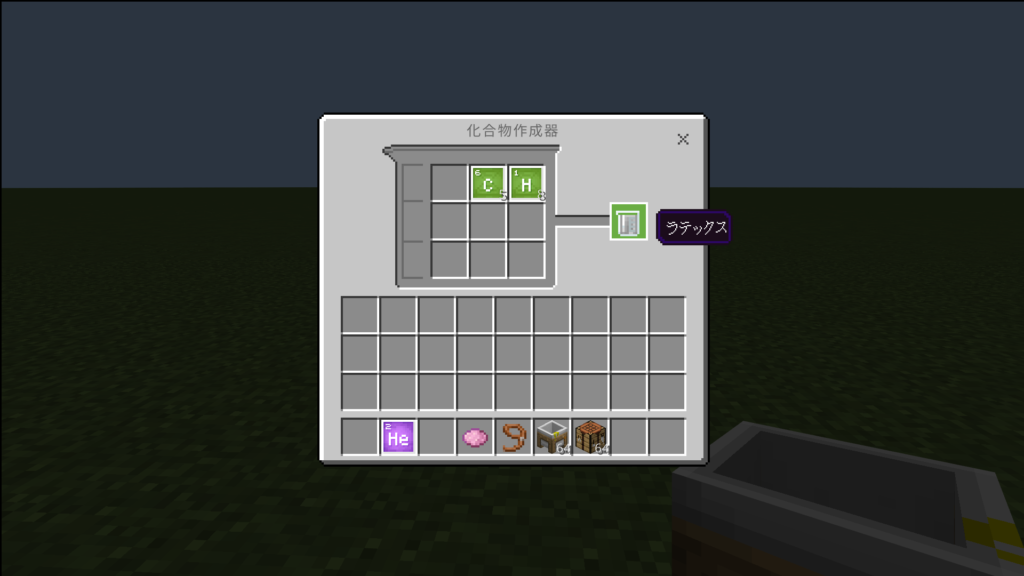 画像のように、これらの素材を化合物作成器にセットすると、ラテックスをつくることができます。