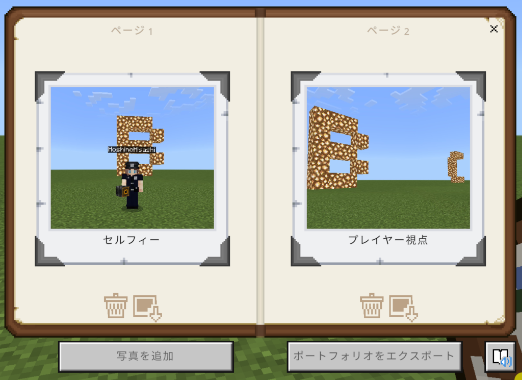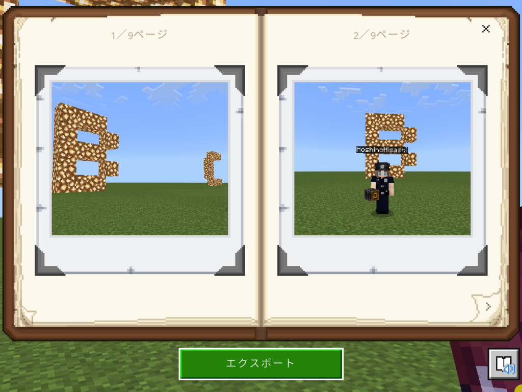 本記事の中で自由研究の提出フォーマットについて触れましたが、現時点では提出フォーマットは紙であることが多いでしょう。そこで、そのような場合に活動内容を印刷することが出来るように教育版マインクラフトではこうしたワールド内で撮影した写真をPDF形式でエクスポートが出来るのです。