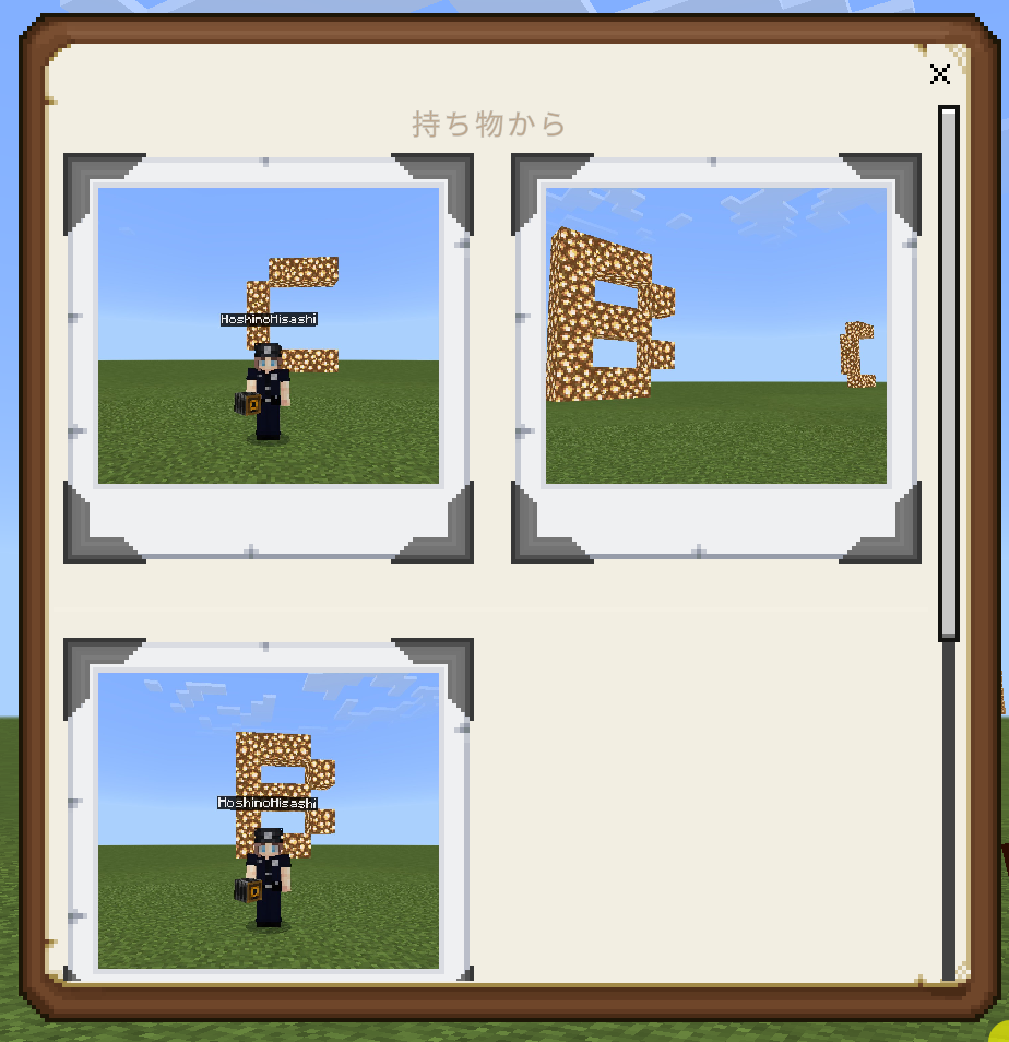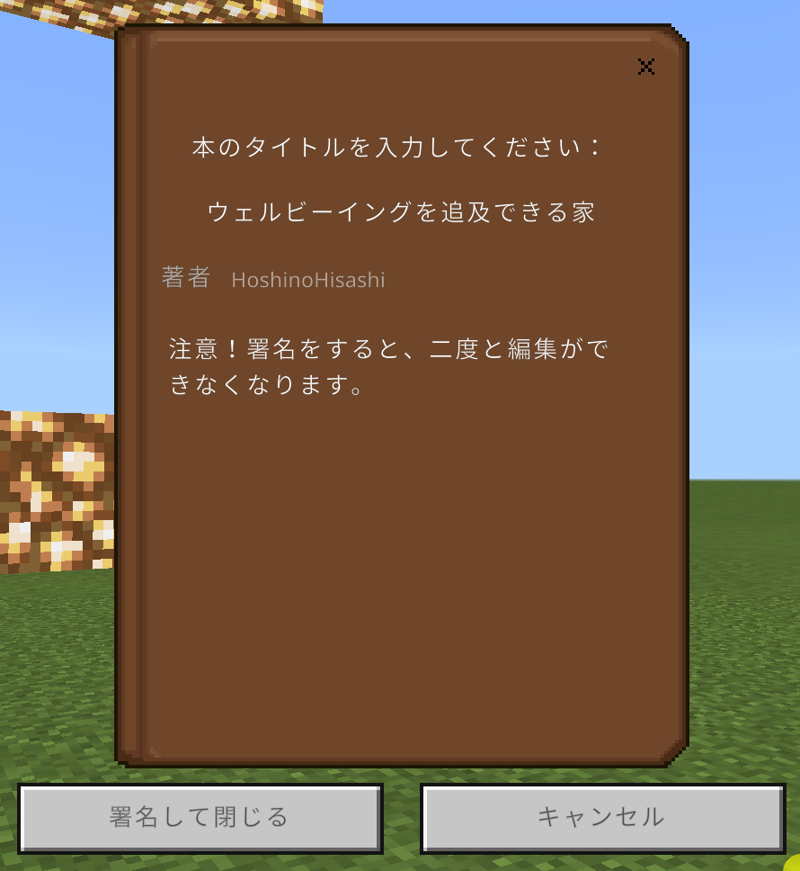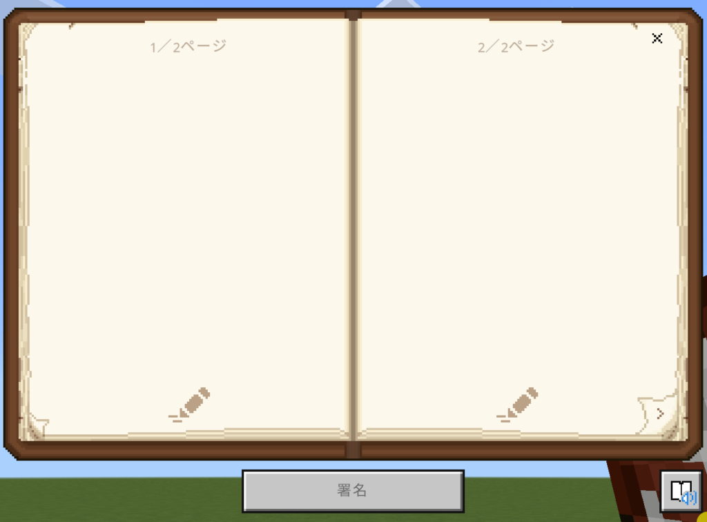 ポートフォリオは写真集でしたが、「マインクラフト内でレポートも書きたい!」という時に使うのが「本と羽ペン」アイテムです。