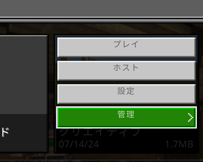 該当ワールドデータをクリックして表示される以下のメニューの「管理」をクリックします。