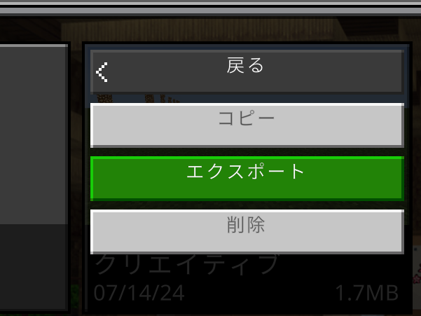 以下のメニューからエクスポートをクリックします。